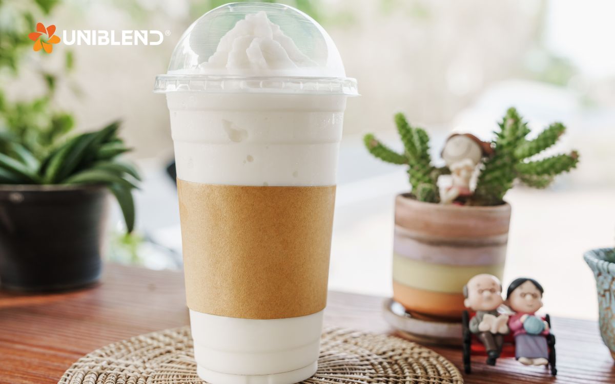 Mẹo nhỏ: Dừa rất dễ bị tách lớp nếu xay không đều. Máy xay sinh tố công nghiệp Uniblend với công suất cao và thiết kế cối tối ưu giúp nguyên liệu được đảo đều liên tục, giữ kết cấu ổn định và đẹp mắt.