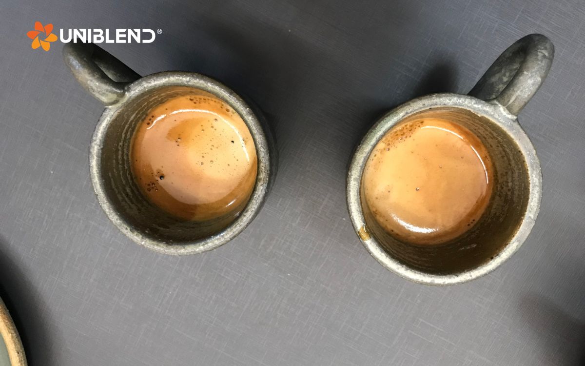 Sau khi chiết xuất, Uni Việt Nam sử dụng máy đánh bọt cầm tay Uniblend DC-203 để tạo foam trực tiếp trên nền cà phê nóng.