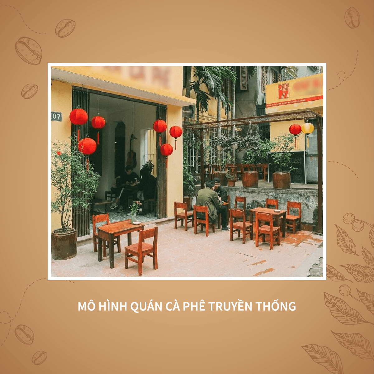 Đối với mô hình quán cà phê truyền thống, bạn có thể lựa chọn bàn ghế thấp, kích thước nhỏ, có thể gấp lại hoặc không. Có thể lựa chọn bàn ghế làm từ nhiều chất liệu như nhựa, gỗ, kim loại,… dựa theo ngân sách và concept của quán.