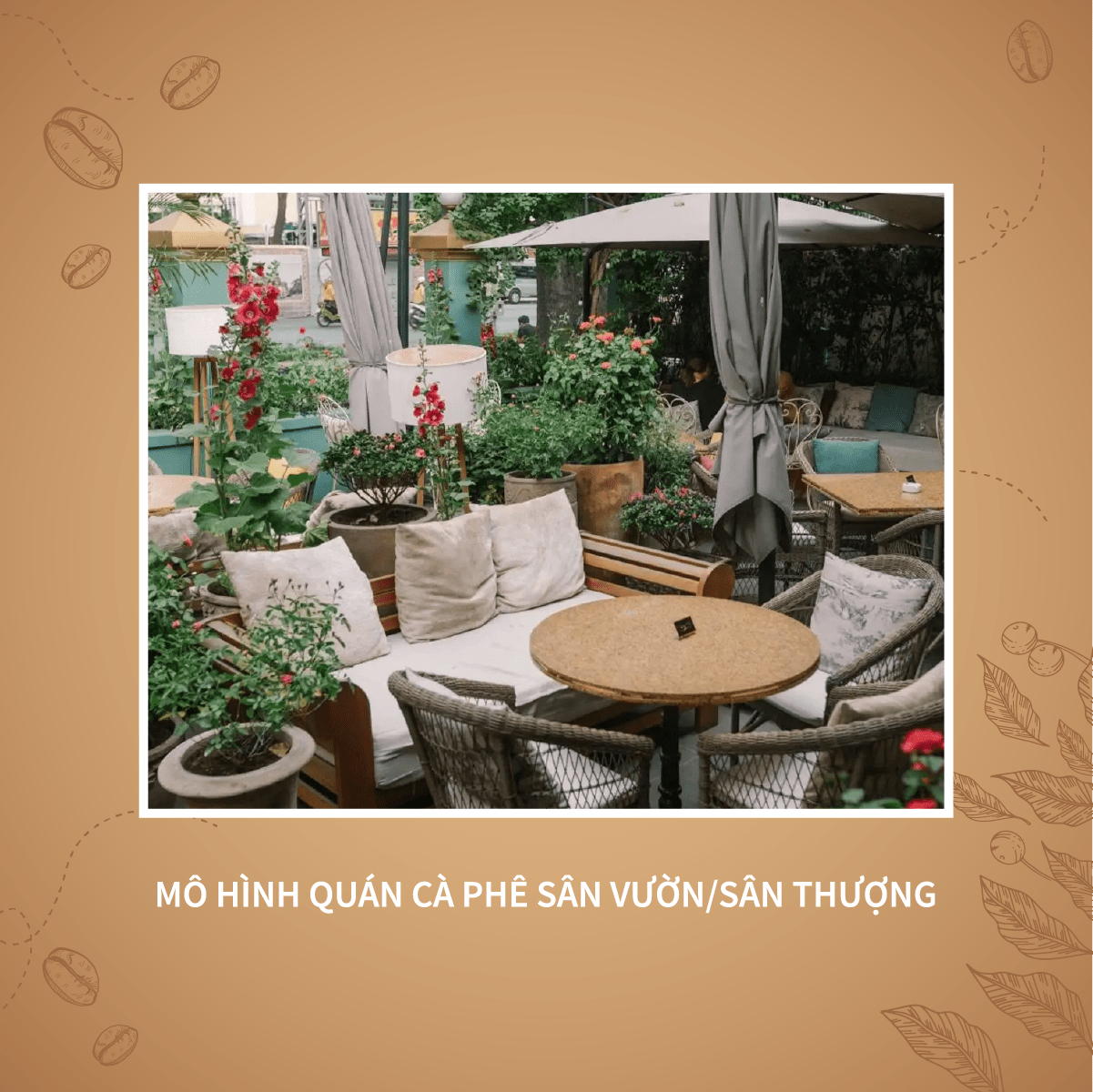 Đối với kiểu mô hình quán cà phê sân vườn/sân thượng, thường sẽ luôn có 2 khu vực để phục vụ khách hàng là trong nhà và ngoài trời. Đối với khu vực trong nhà, quán cà phê của bạn có thể linh hoạt lựa chọn bàn ghế tùy theo concept của quán. Còn với khu vực ngoài trời, bạn nên lưu ý chọn những loại bàn ghế có chất liệu chống thấm nước và độ bền cao, tránh trường hợp mưa/nắng nhiều sẽ làm hỏng chất lượng bàn ghế ở đây.