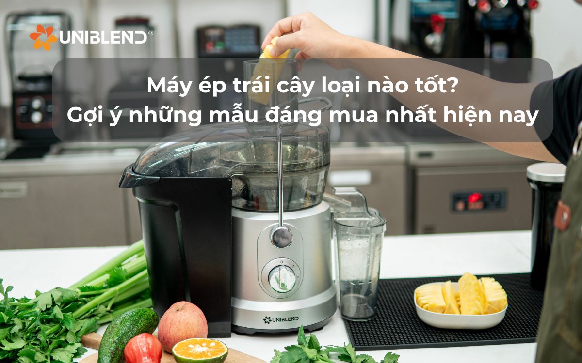 Máy ép trái cây là thiết bị không thể thiếu trong các quán nước ép, sinh tố hay ngay cả trong gian bếp gia đình hiện đại. Với nhu cầu ngày càng cao về chế độ ăn uống lành mạnh, việc lựa chọn một chiếc máy ép trái cây phù hợp trở thành mối quan tâm hàng đầu của nhiều người. Vậy máy ép trái cây loại nào tốt? Bài viết này của Uniblend sẽ giúp bạn tìm hiểu các loại máy phổ biến và gợi ý những mẫu máy ép đáng mua nhất hiện nay.