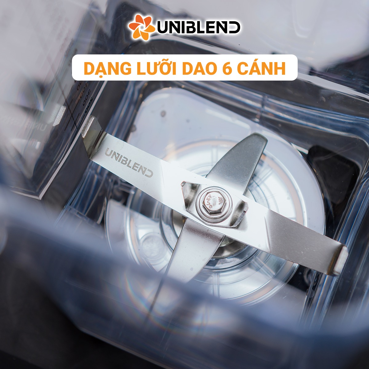 Máy xay sinh tố công nghiệp Uniblend UB-712 sử dụng loại lưỡi dao 6 cánh làm từ thép không gỉ nên có độ bền tốt và khả năng xay mạnh mẽ.