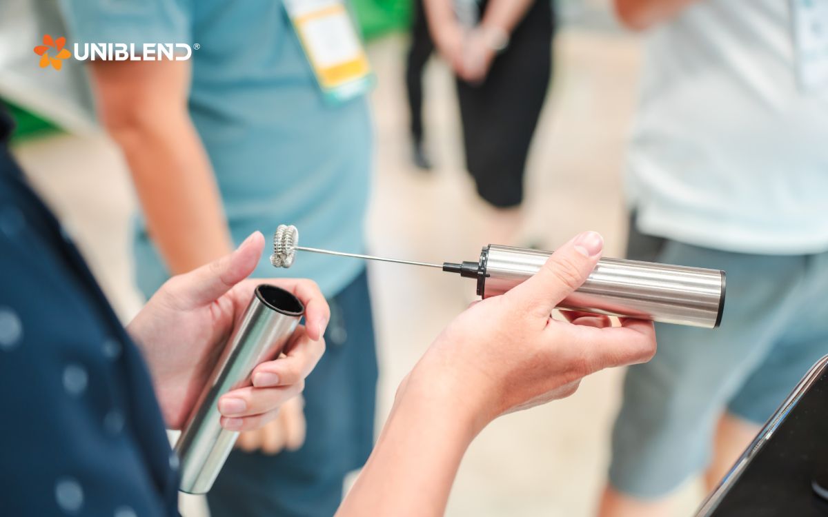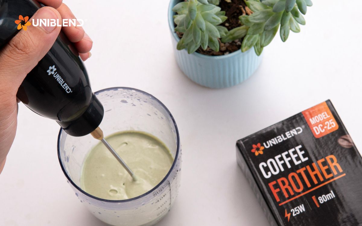Lựa chọn lý tưởng là máy đánh bọt sạc pin, chẳng hạn Uniblend DC-201 hoặc DC-08.